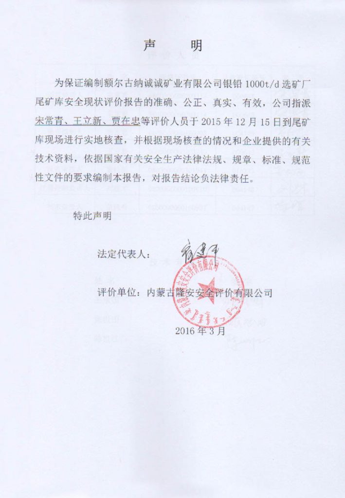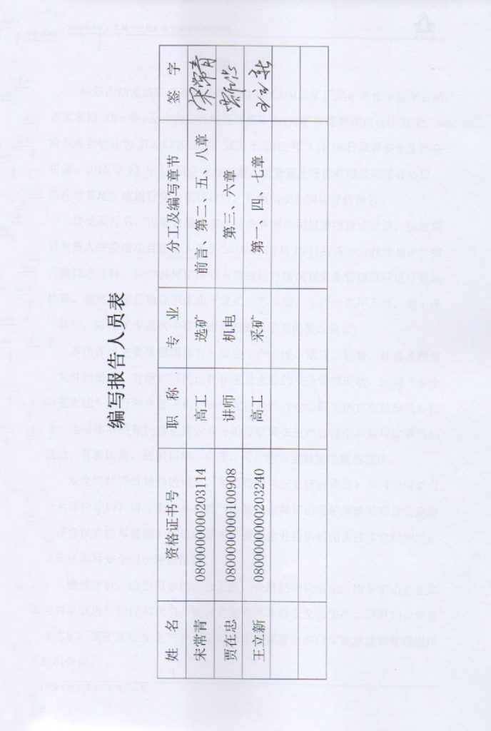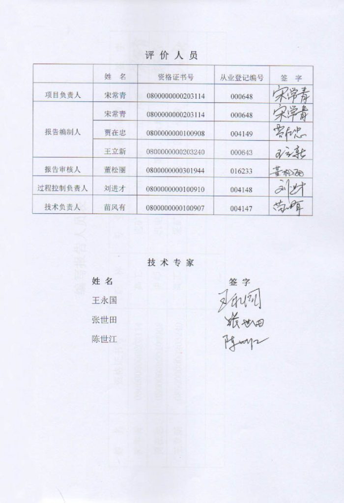 額爾古納誠(chéng)誠(chéng)礦業(yè)有限公司尾礦庫(kù)安全現(xiàn)狀評(píng)價(jià)報(bào)告–簽字表