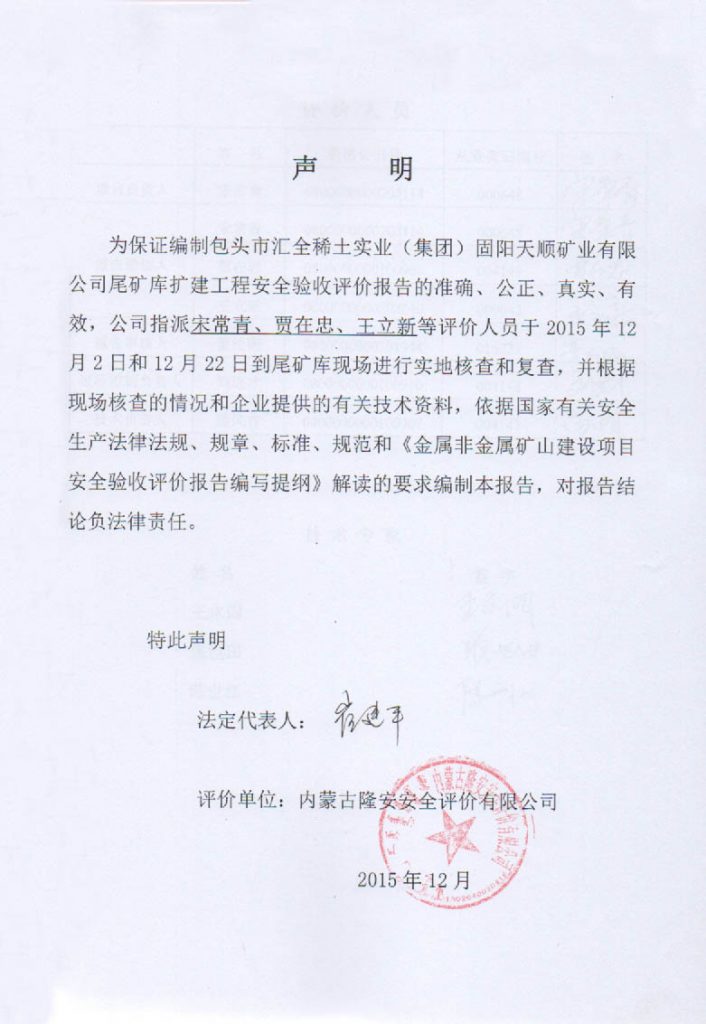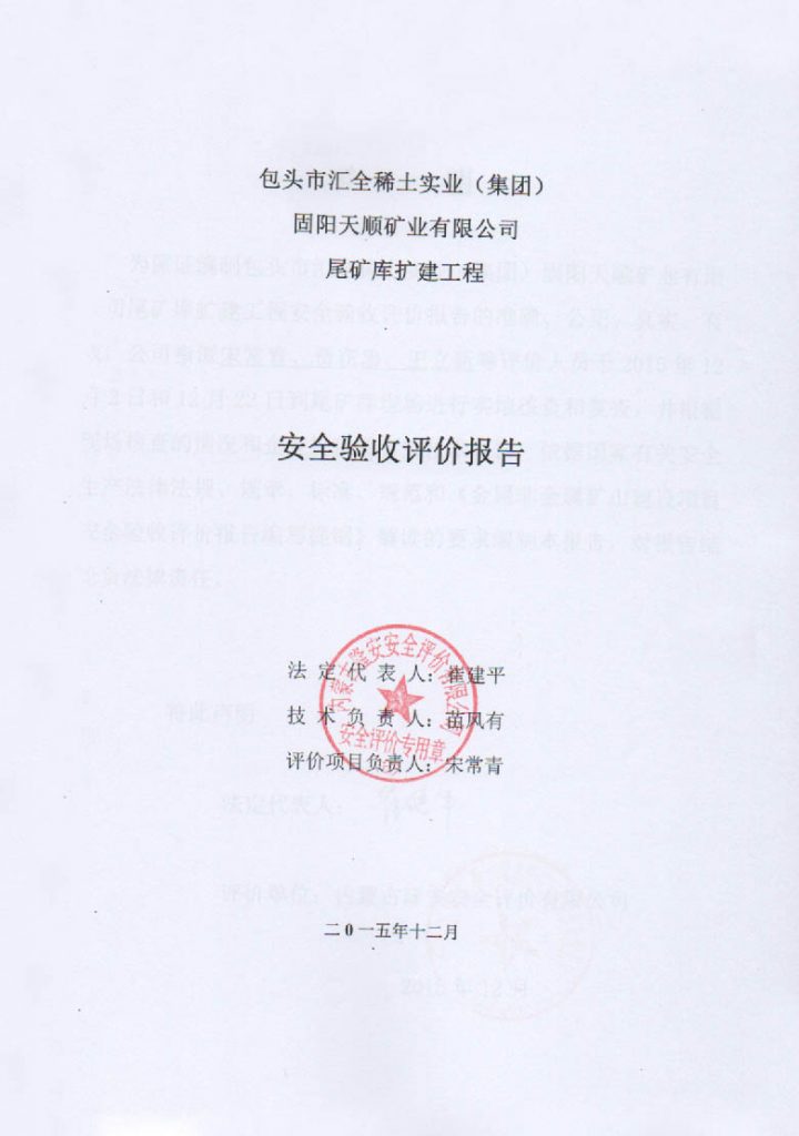 包頭市匯全稀土實(shí)業(yè)(集團(tuán))固陽(yáng)天順礦業(yè)有限公司尾礦庫(kù)擴(kuò)建工程安全驗(yàn)收評(píng)價(jià)報(bào)告–簽字表