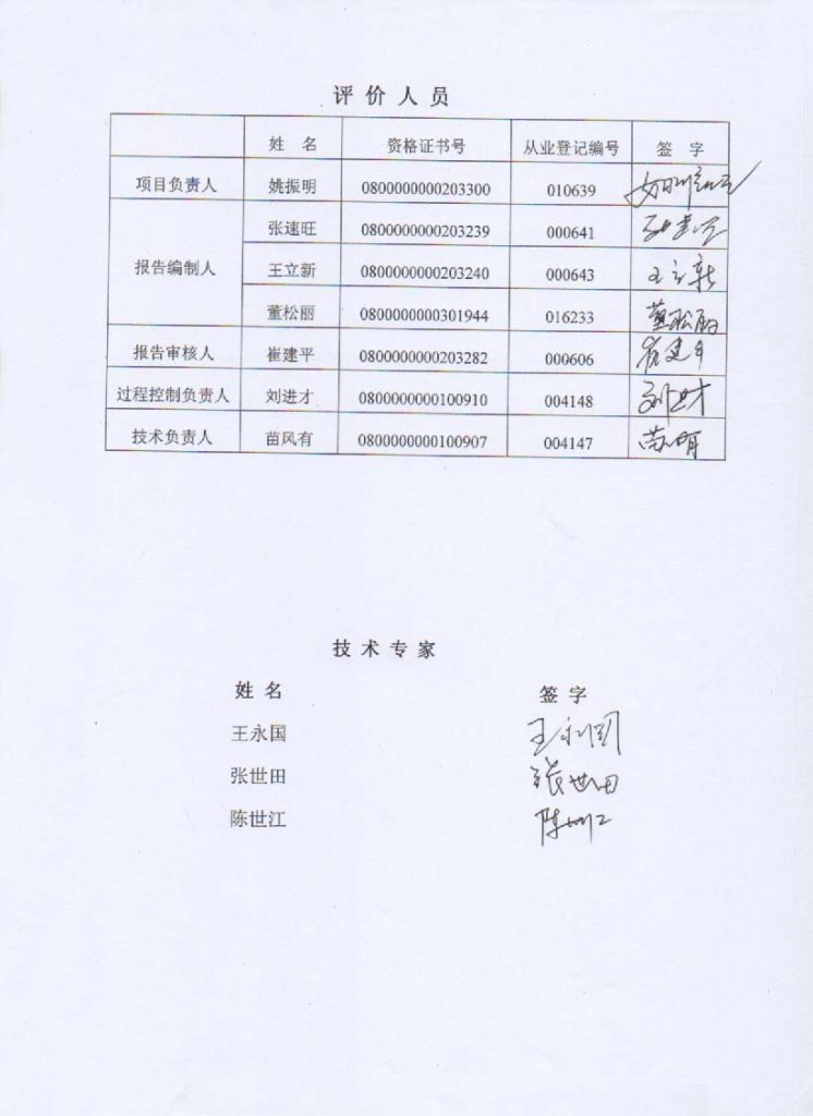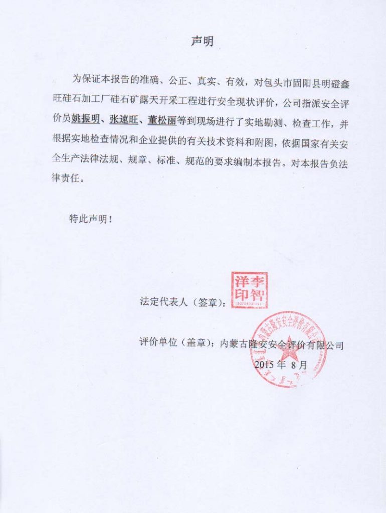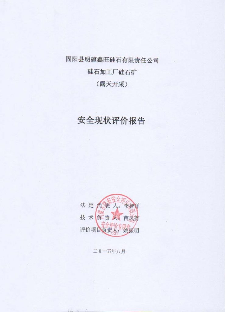 固陽縣明磴鑫旺硅石有限責(zé)任公司硅石加工廠硅石礦露天開采安全現(xiàn)狀評價報告–簽字表