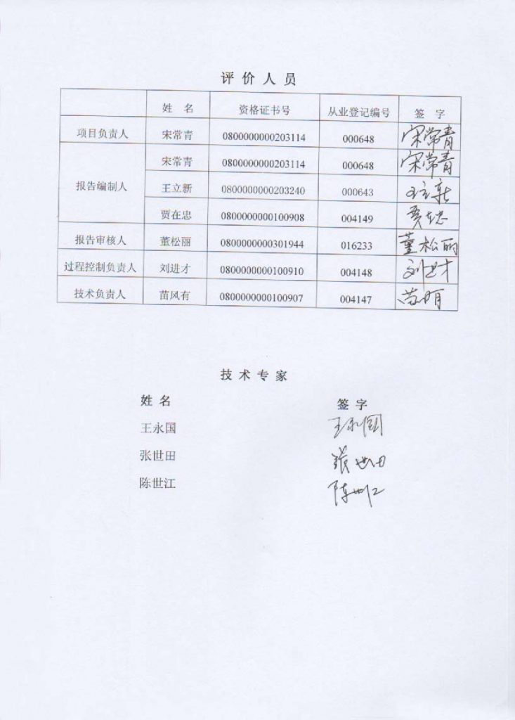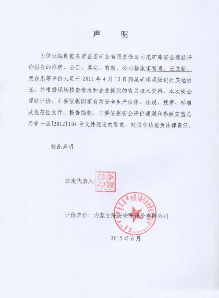 包頭市益宏礦業(yè)有限責(zé)任公司尾礦庫安全現(xiàn)狀評價報告–簽字表