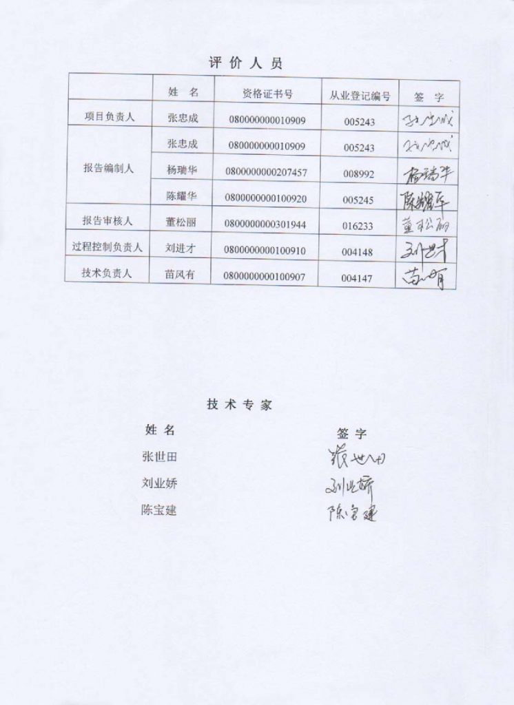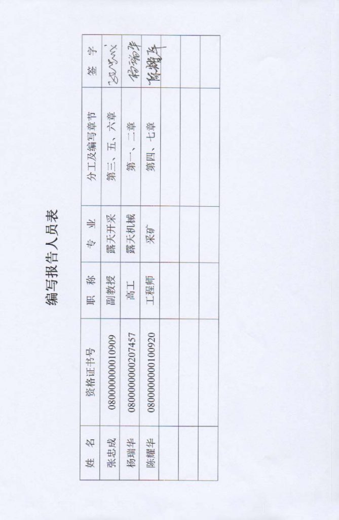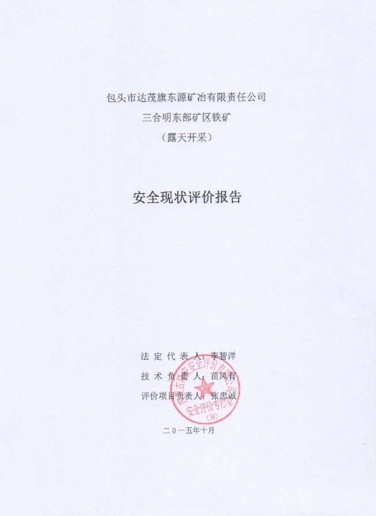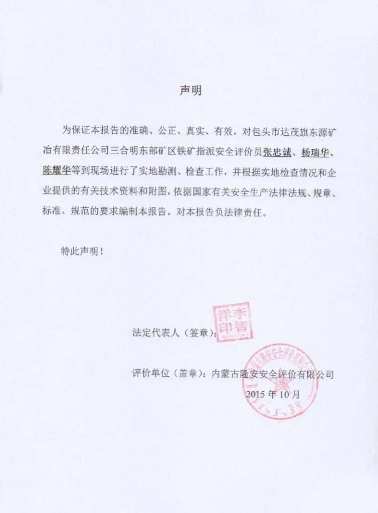 包頭市達茂旗東源礦冶有限責任公司三合明東部礦區(qū)鐵礦安全現(xiàn)狀評價報告–簽字表