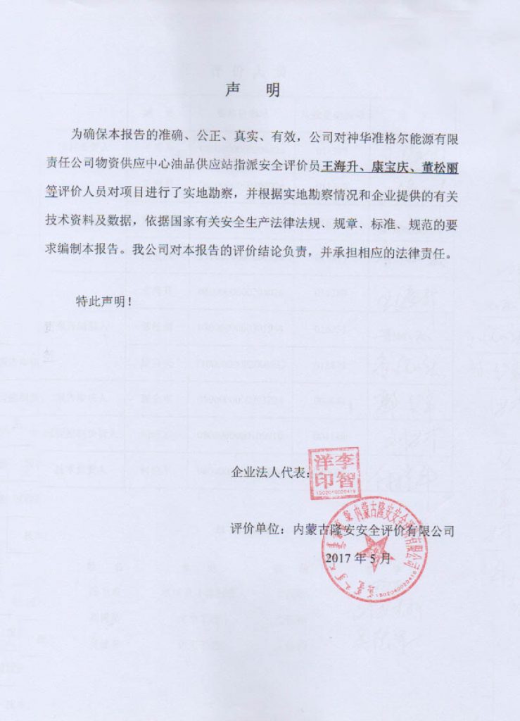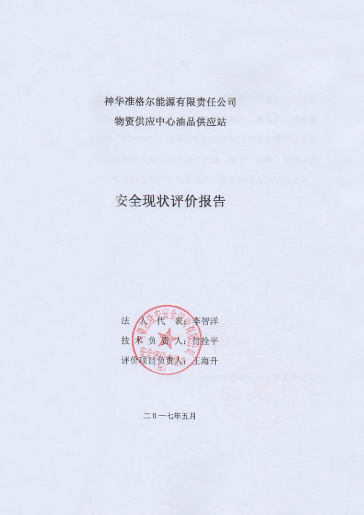 神華準格爾能源有限責任公司物資供應中心油品供應站安全現(xiàn)狀評價報告–簽字表