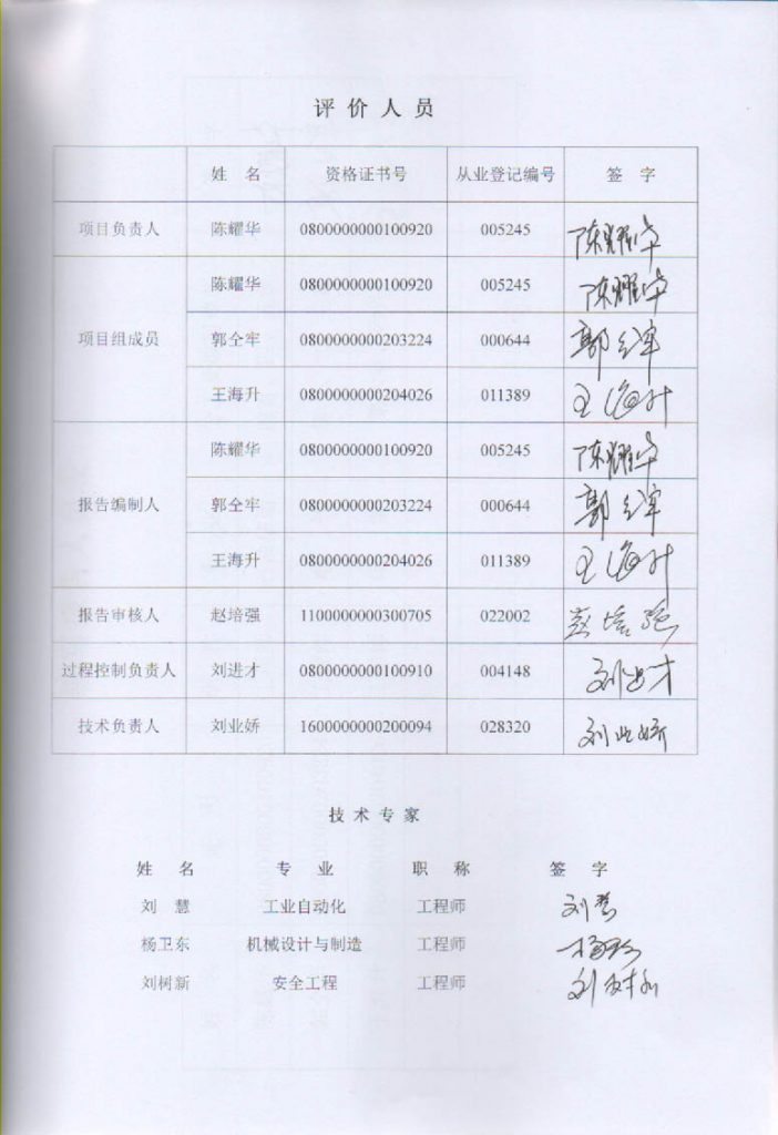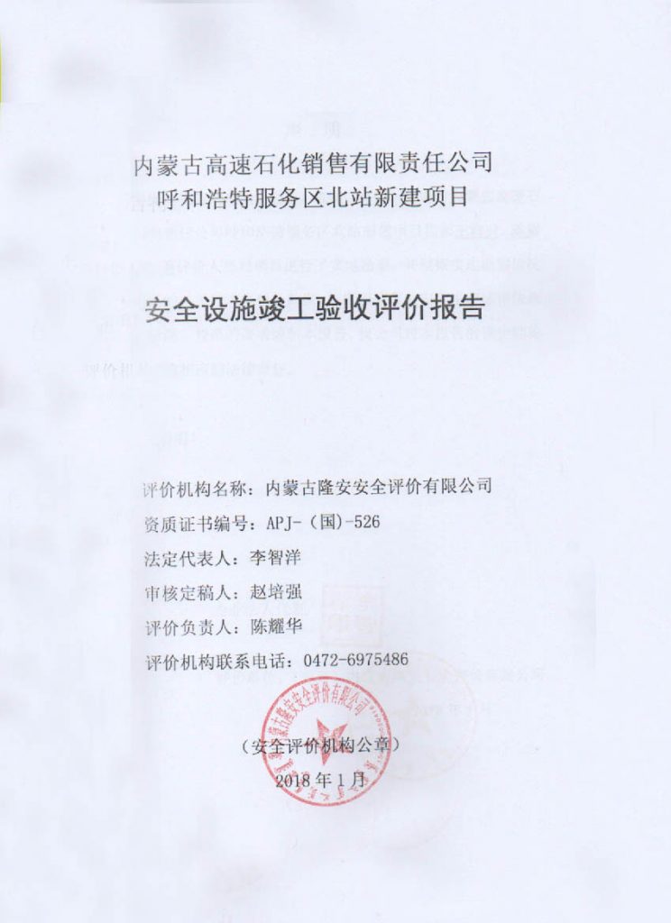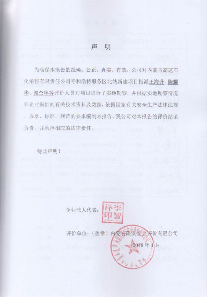 內蒙古高速石化銷售有限責任公司呼和浩特服務區(qū)北站新建項目安全設施竣工驗收評價報告–簽字表
