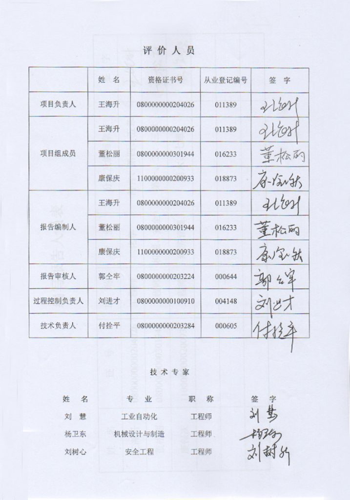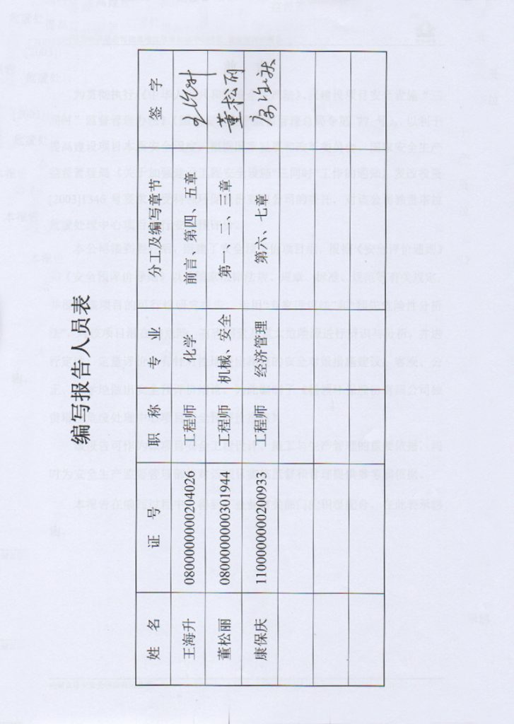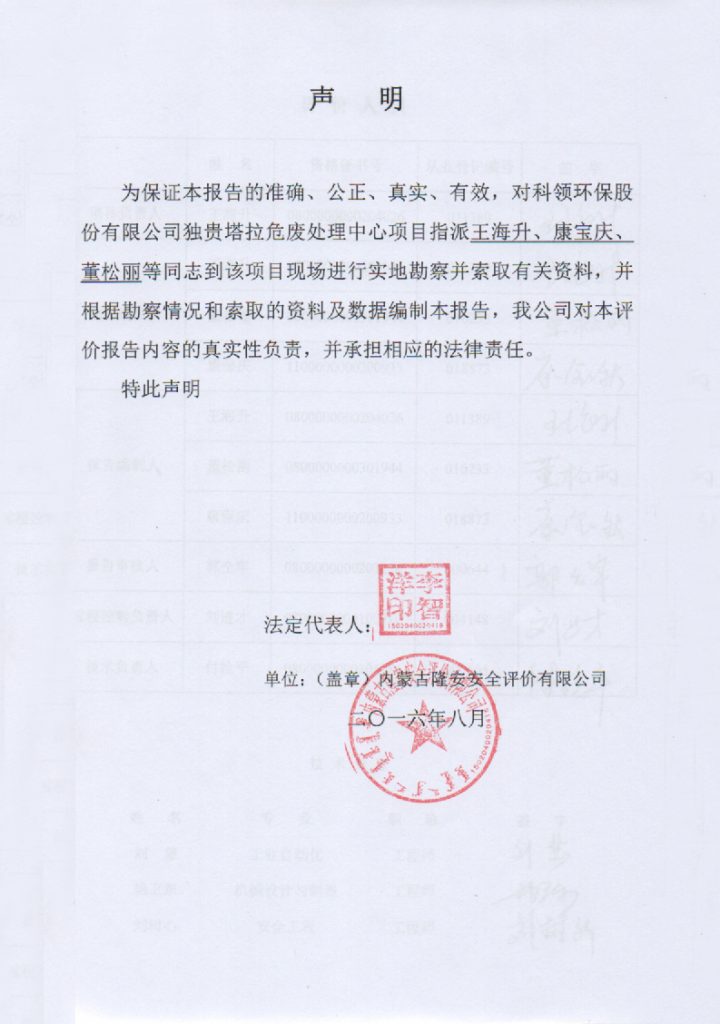 科領(lǐng)環(huán)保股份有限公司獨(dú)貴塔拉危廢處理中心項(xiàng)目安全預(yù)評(píng)價(jià)報(bào)告–簽字表