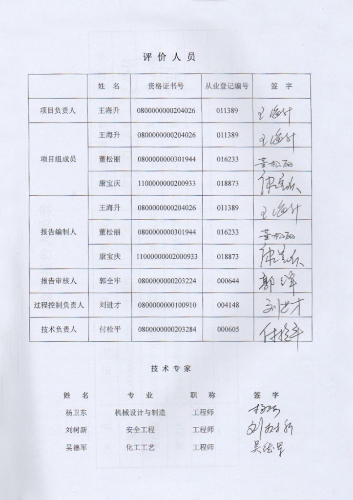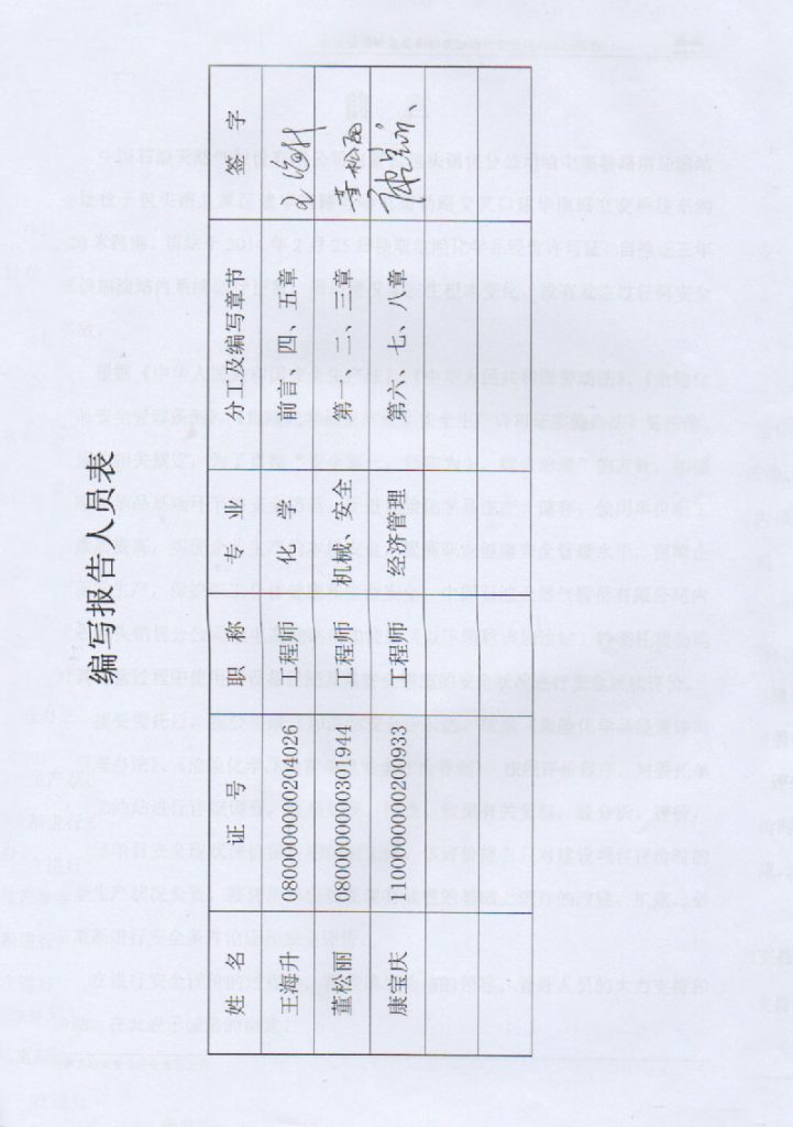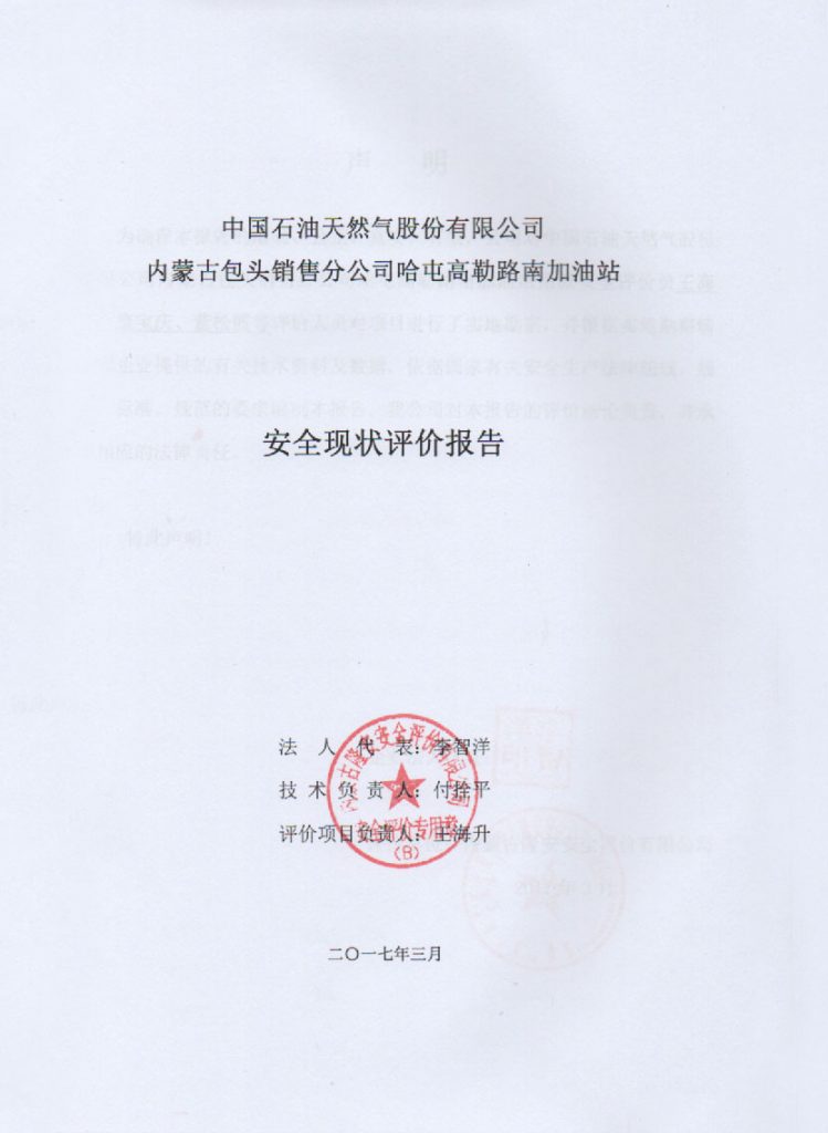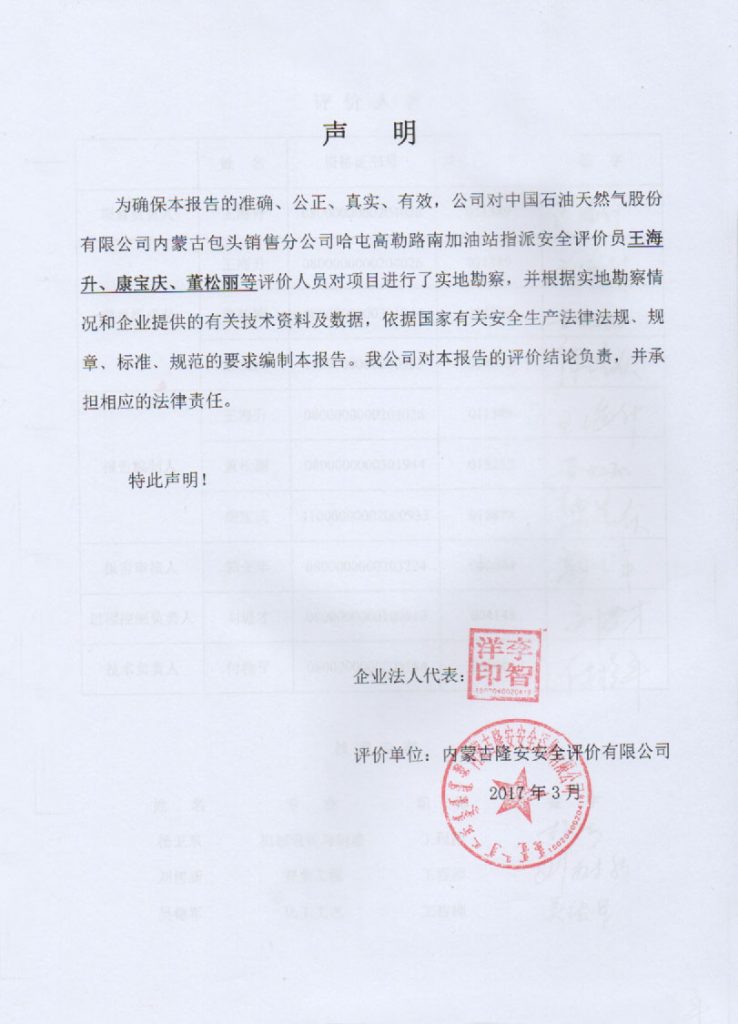 中國(guó)石油內(nèi)蒙古包頭銷售分公司哈屯高勒路南加油站安全現(xiàn)狀評(píng)價(jià)報(bào)告–簽字表