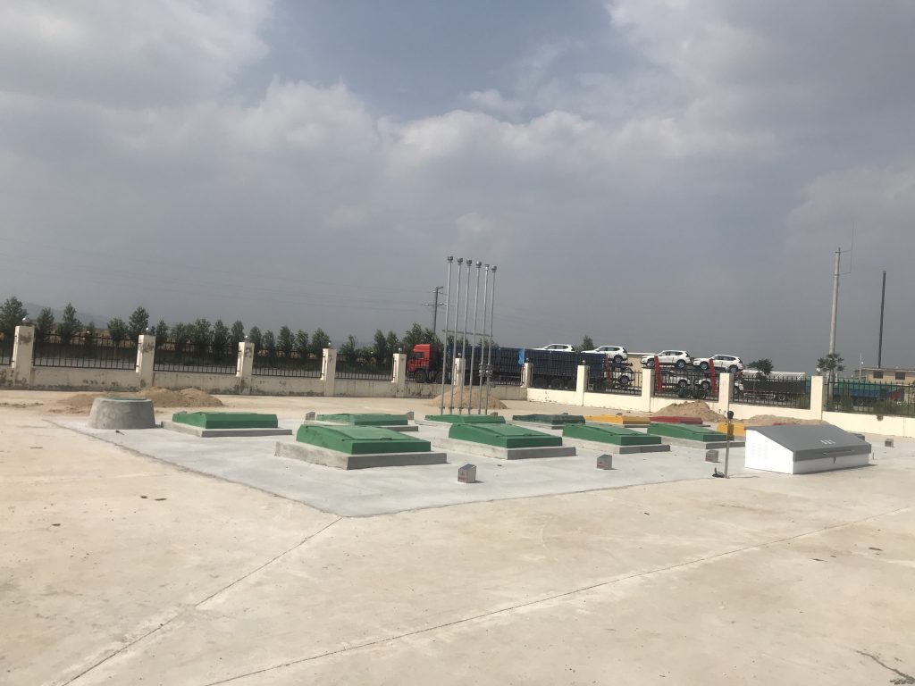 內(nèi)蒙古高速石化銷售有限責(zé)任公司大寶山服務(wù)區(qū)北加油站分公司該加油站建有加油島7座,雙槍加油機7臺,其中使用汽油加油機3臺,柴油加油機4臺(罩棚下有三座加油島下的柴油加油機只使用一臺,其他兩臺未投入使用)。地埋油罐區(qū)1處,設(shè)置6座鋼制臥式埋地油罐,其中SF雙層汽油儲罐2個,單罐容積為30m3,汽油總儲量為45t(密度以750kg/m3計);SF雙層柴油儲罐4個,單罐容積為30m3,柴油總儲量為102t(密度以850kg/m3計)。