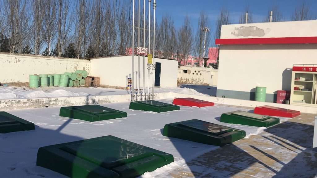 該加油站位于興安盟科爾沁右翼中旗吐列毛杜農場,加油站東北側為居民樓,南側為農場道路、架空電力線(H=15,無絕緣層),東、西、北三側為空地,設出口、入口各一個并與鄉(xiāng)間道路相連。加油站東、西、北三側設有實體圍墻。交通十分便利,運輸便捷。加油站主要由站房、加油區(qū)、油罐區(qū)組成,站區(qū)西北側為油罐區(qū),4個埋地油罐由東向西依次排列,卸油點設置在油罐區(qū)南側;油罐區(qū)南側為罩棚,罩棚下4臺加油機;站房布置于站區(qū)北側,布置有休息室、營業(yè)廳。