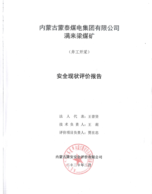 本次評價認為:內(nèi)蒙古蒙泰煤電集團有限公司滿來梁煤礦的安全管理以及生產(chǎn)系統(tǒng)、輔助系統(tǒng)及其工藝和設(shè)備運行正常,符合《煤礦安全規(guī)程》、《煤礦整體托管安全管理辦法(試行)》和國家有關(guān)標(biāo)準(zhǔn)要求;煤礦在井田范圍內(nèi)無其他工程,在開采過程中無超層越界現(xiàn)象;安全措施機制和管理制度及各種安全措施能夠滿足安全生產(chǎn)需要,控制各種災(zāi)害的措施全面有效,符合安全生產(chǎn)條件規(guī)定,具備安全生產(chǎn)條件。