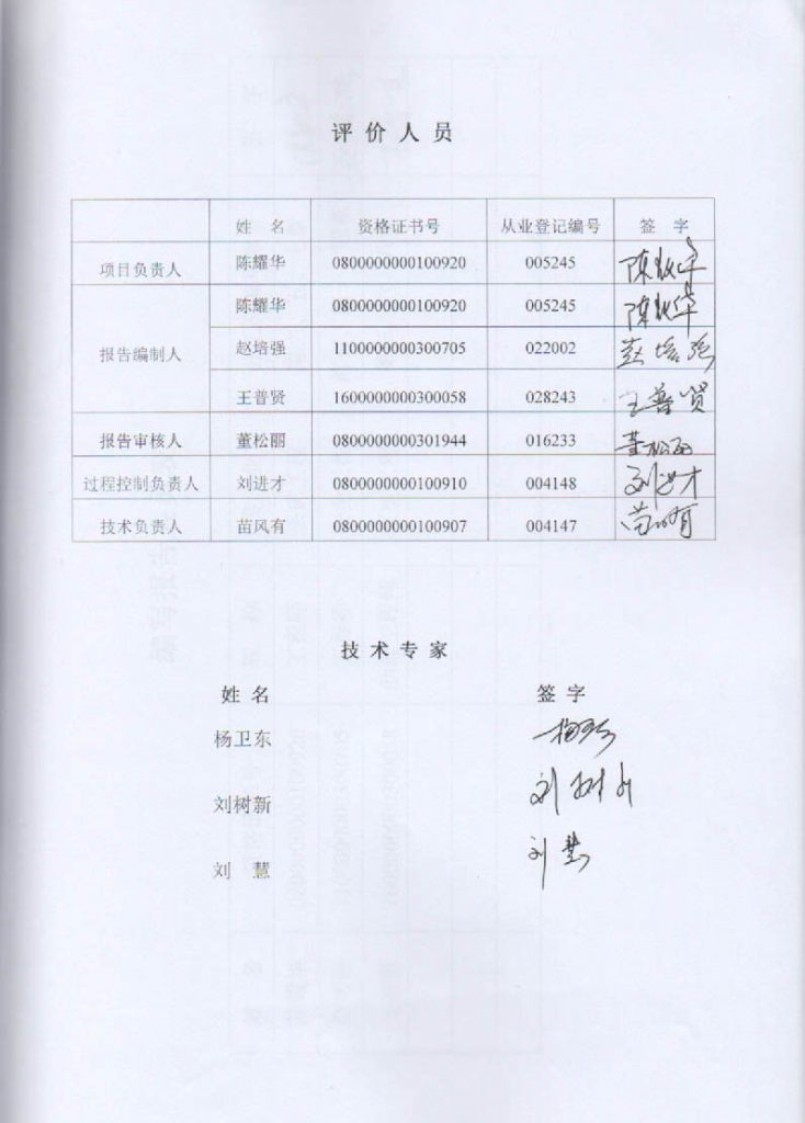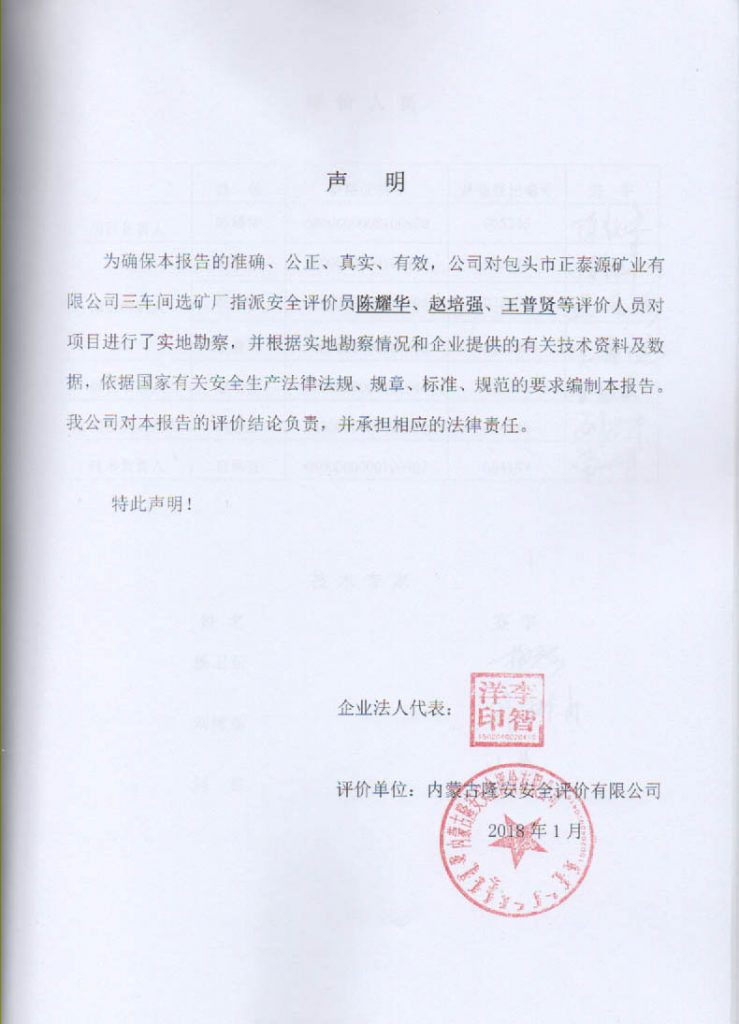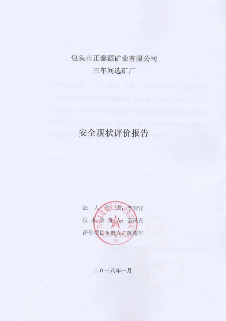 包頭市正泰源礦業(yè)有限公司三車間選礦廠安全現(xiàn)狀評(píng)價(jià)報(bào)告–簽字表