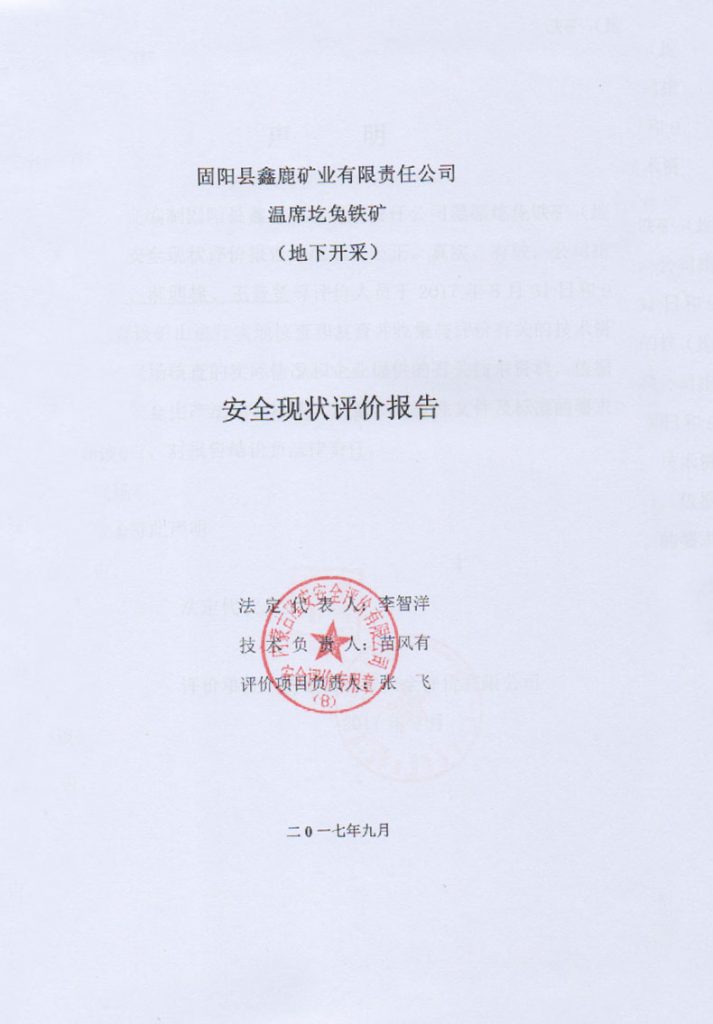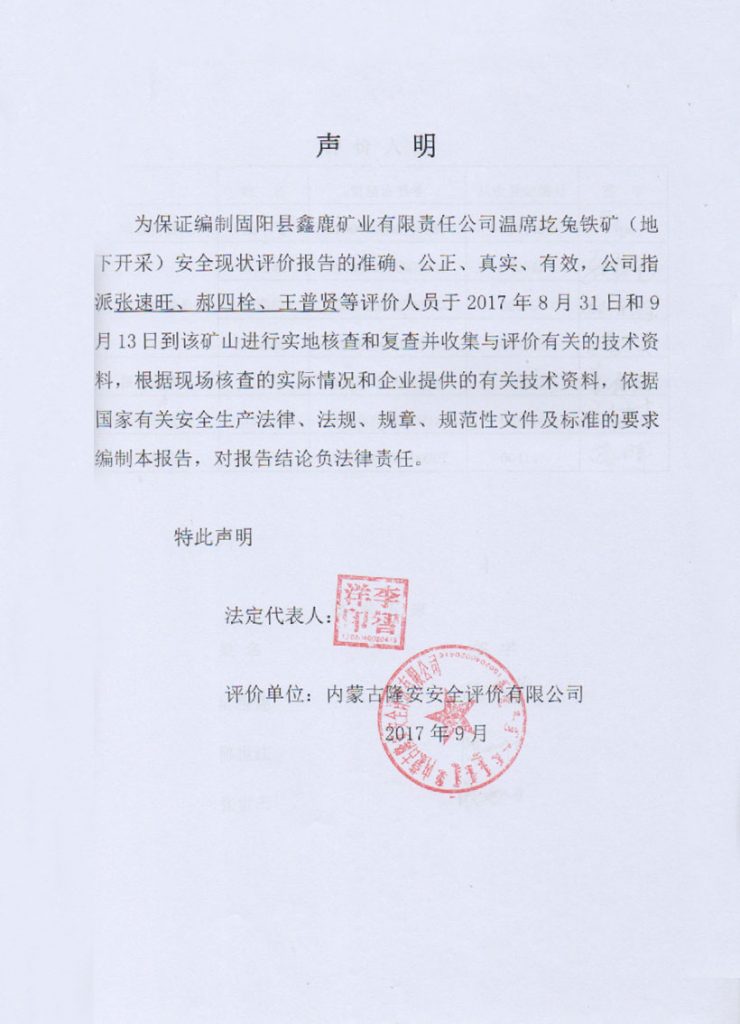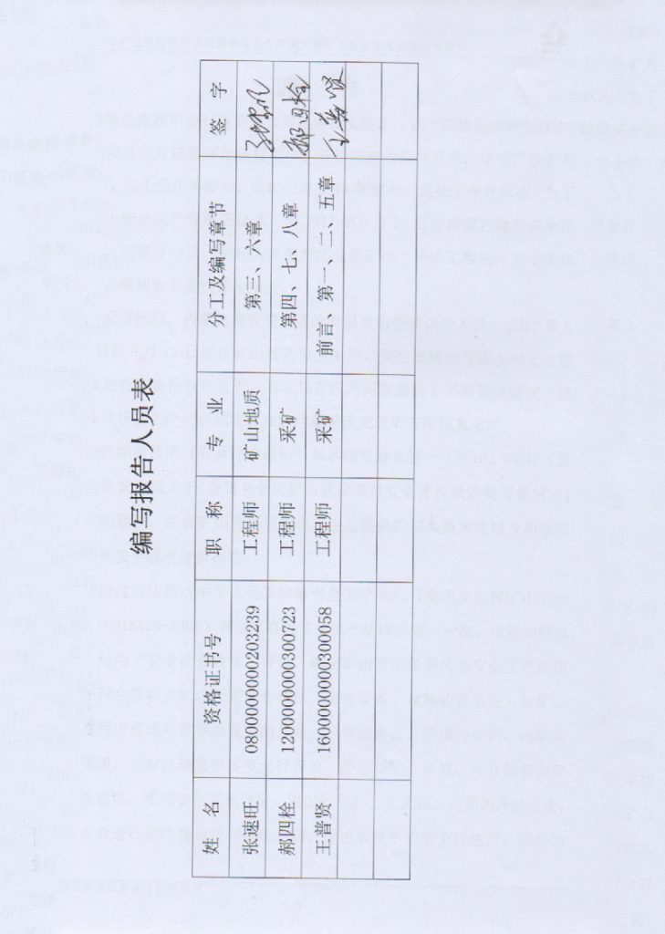 固陽縣鑫鹿礦業(yè)有限責(zé)任公司溫席圪兔鐵礦地下采礦工程安全現(xiàn)狀評價(jià)報(bào)告 –簽字表
