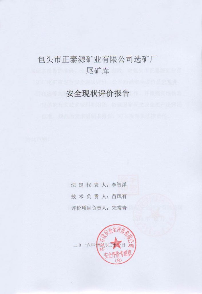 頭市正泰源礦業(yè)有限公司選礦廠尾礦庫安全現(xiàn)狀評價報告–簽字表