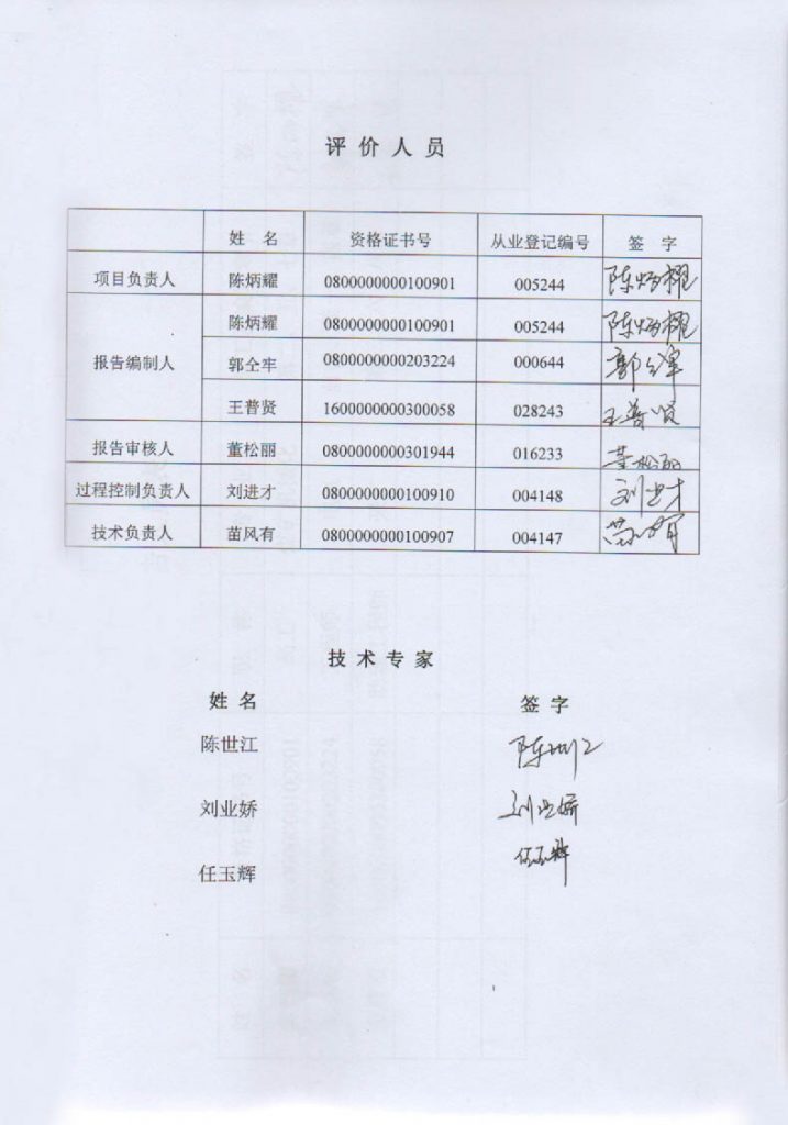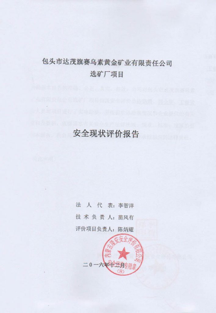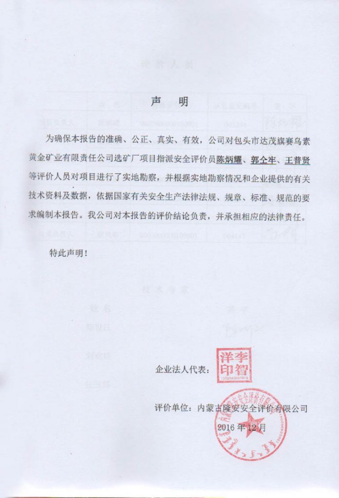 包頭市達(dá)茂旗賽烏素黃金礦業(yè)有限責(zé)任公司選礦廠項目安全現(xiàn)狀評價報告–簽字表