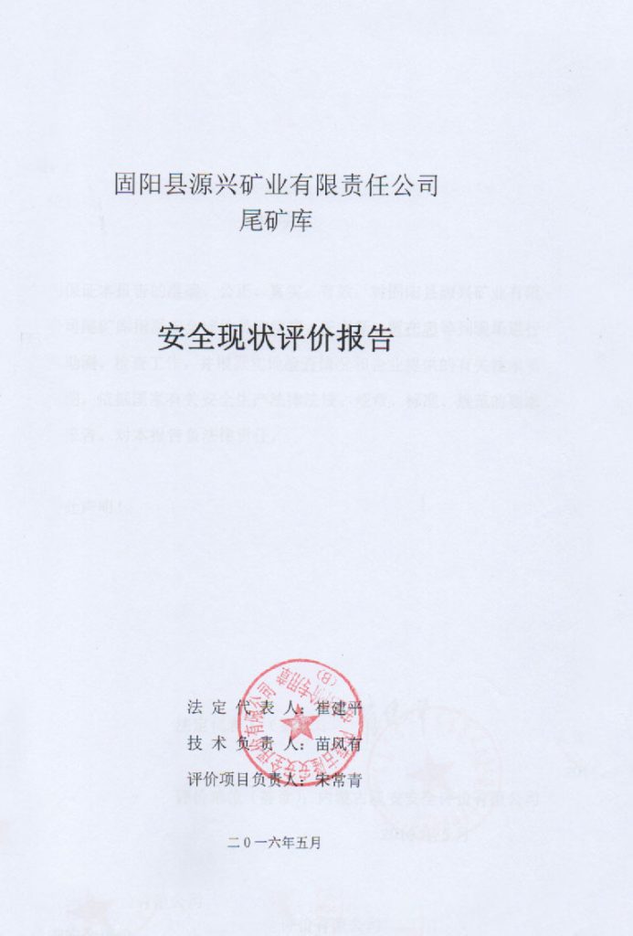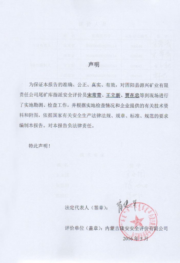 固陽縣源興礦業(yè)有限責任公司尾礦庫安全現(xiàn)狀評價報告–簽字表