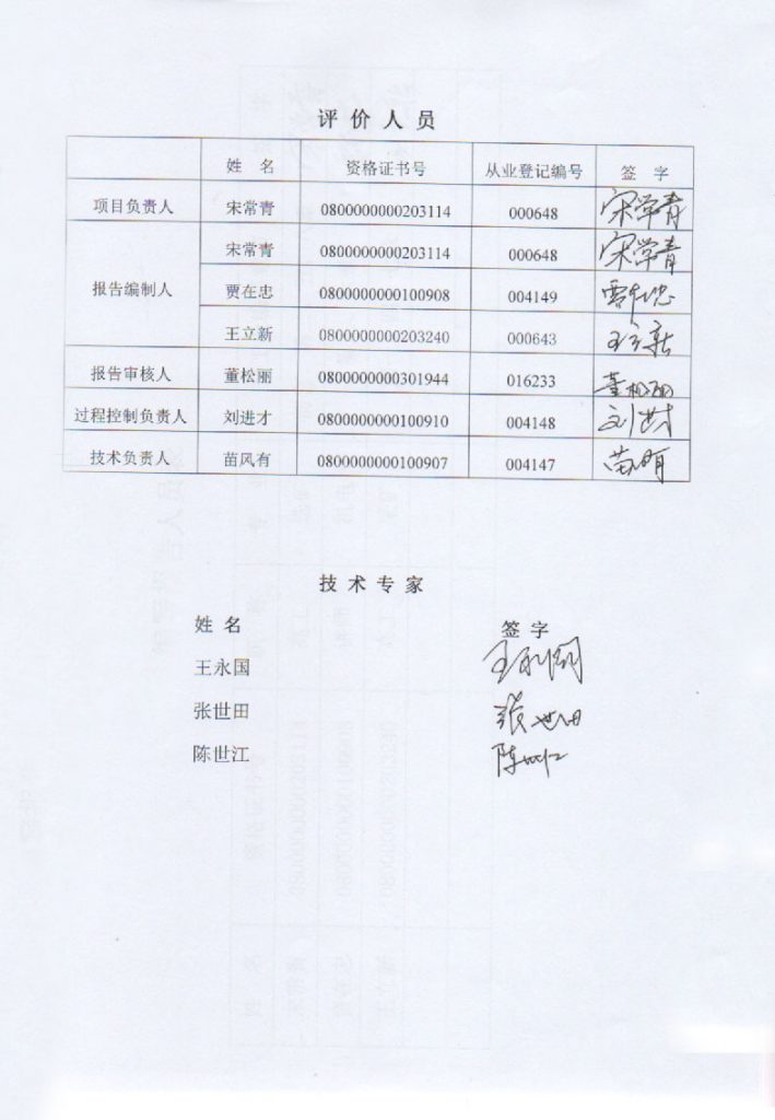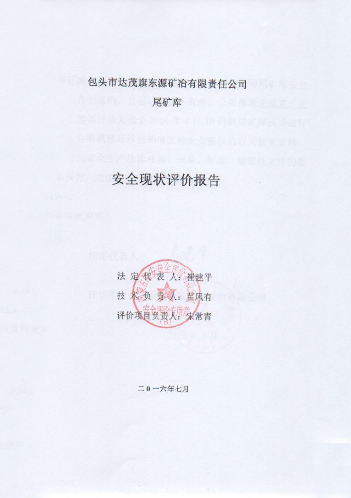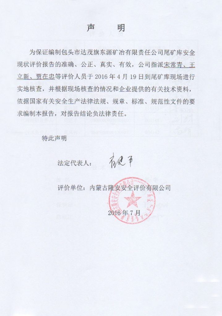 包頭市達(dá)茂旗東源礦冶有限責(zé)任公司尾礦庫安全現(xiàn)狀評價報告–簽字表