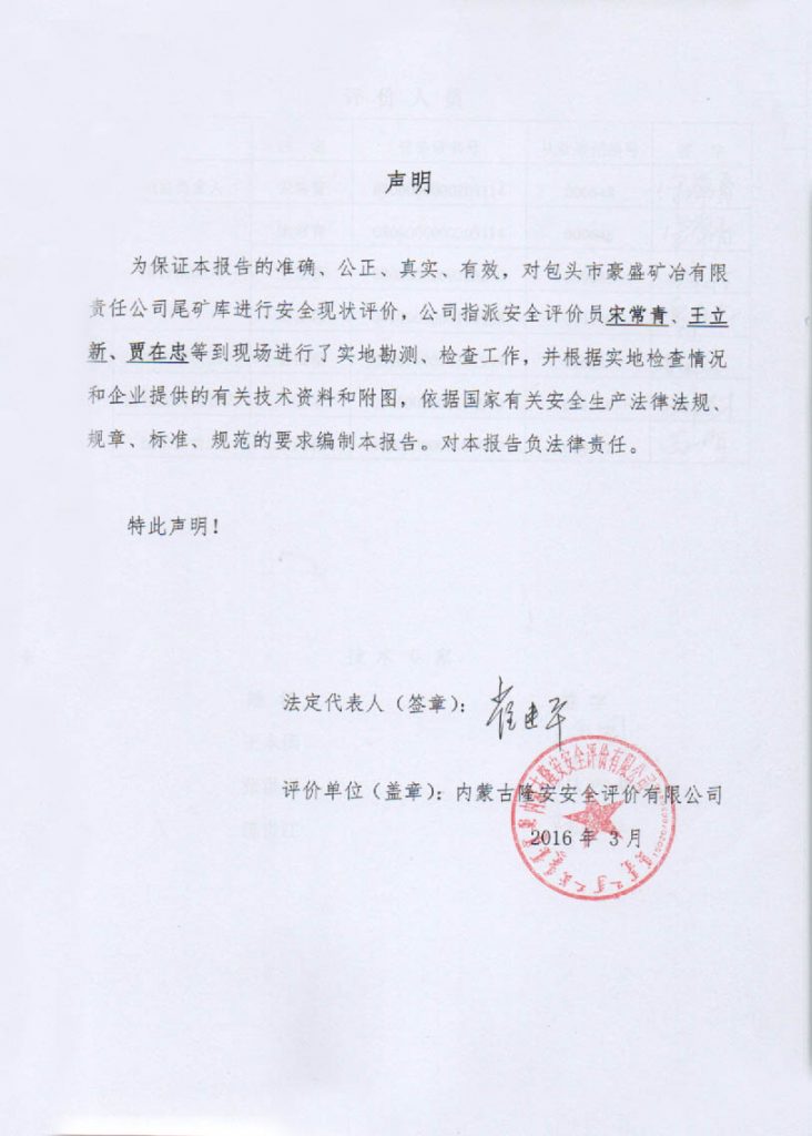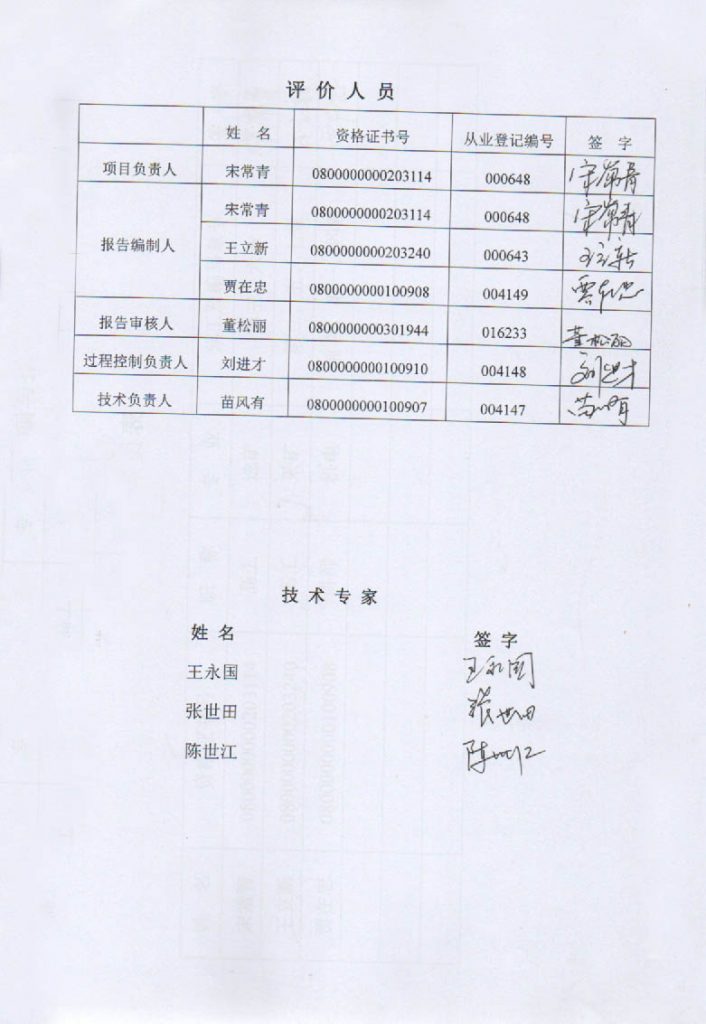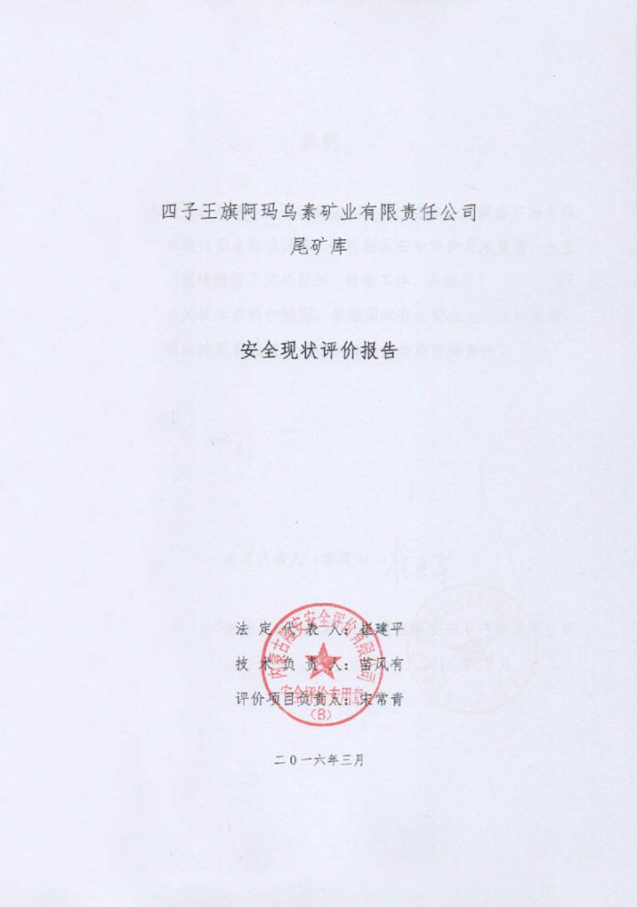 四子王旗阿瑪烏素礦業(yè)有限責(zé)任公司尾礦庫(kù)安全現(xiàn)狀評(píng)價(jià)報(bào)告–簽字表