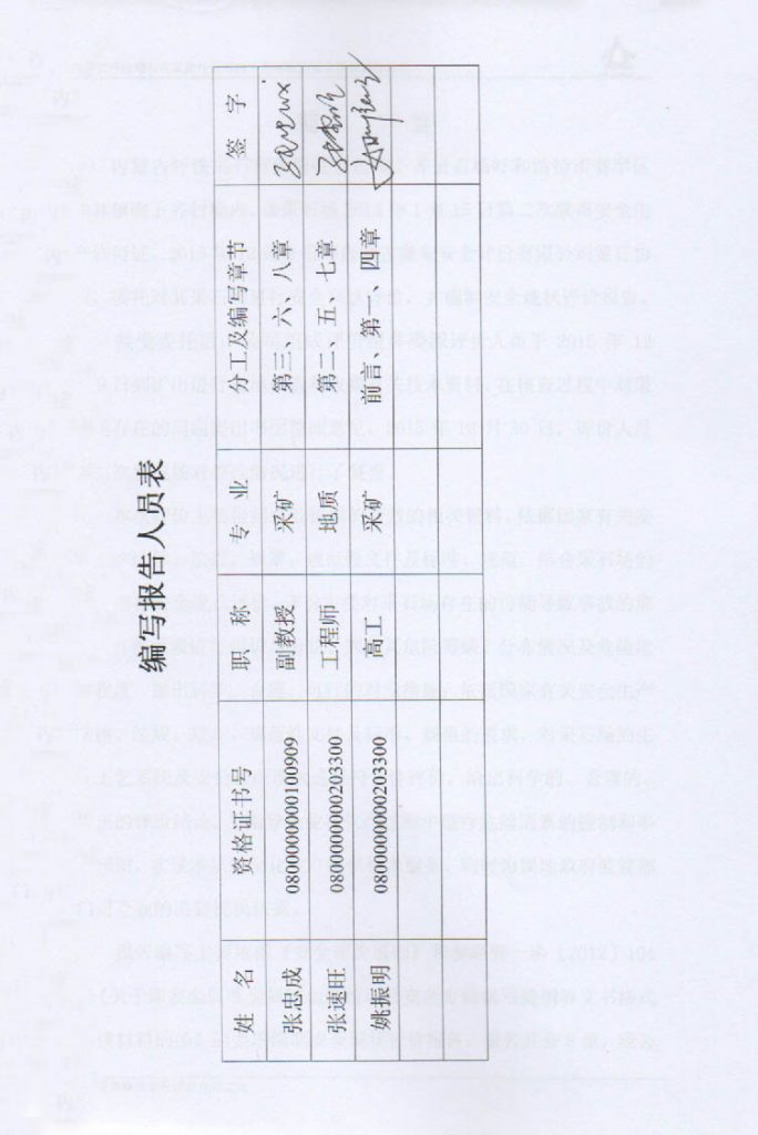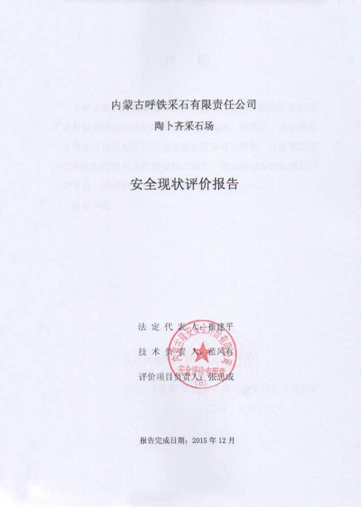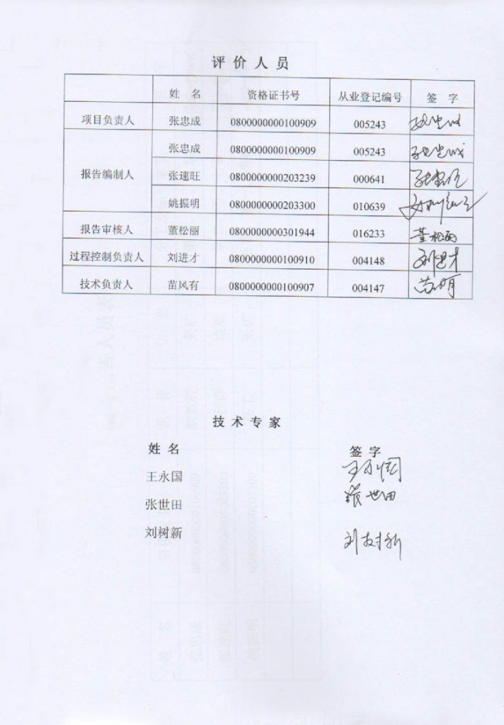 內(nèi)蒙古呼鐵采石有限責(zé)任公司陶卜齊采石場安全現(xiàn)狀評價(jià)報(bào)告–簽字表